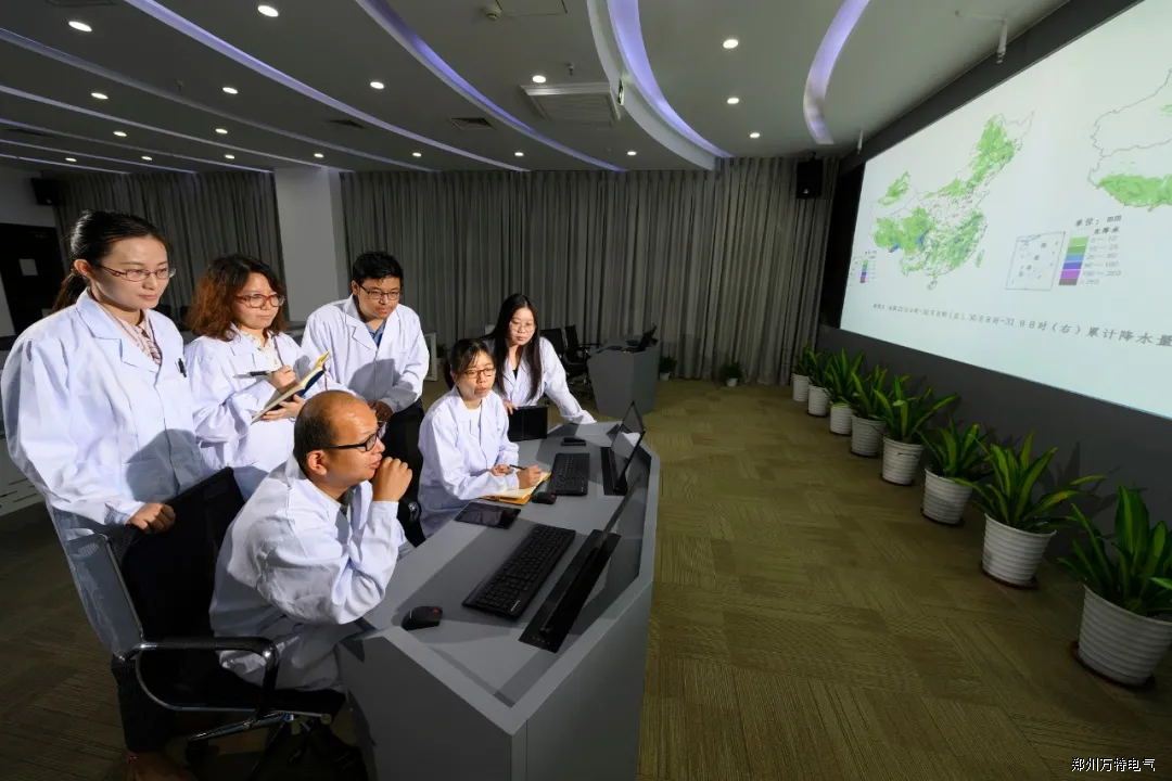 中國電科院數(shù)值天氣預(yù)報團(tuán)隊在實驗室研討電力氣象預(yù)報結(jié)果