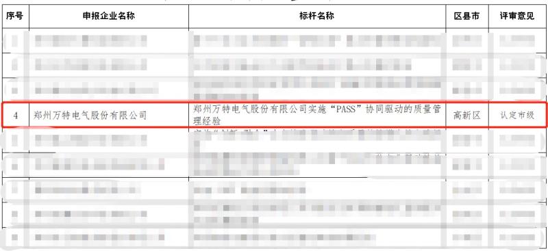 5月22日,鄭州市工信局公示,認(rèn)定我公司實(shí)施“PASS”協(xié)同驅(qū)動(dòng)的質(zhì)量管理經(jīng)驗(yàn)為2023年鄭州市質(zhì)量標(biāo)桿企業(yè),鄭州市此次共認(rèn)定20家企業(yè),高新區(qū)僅有兩家企業(yè)通過(guò)。