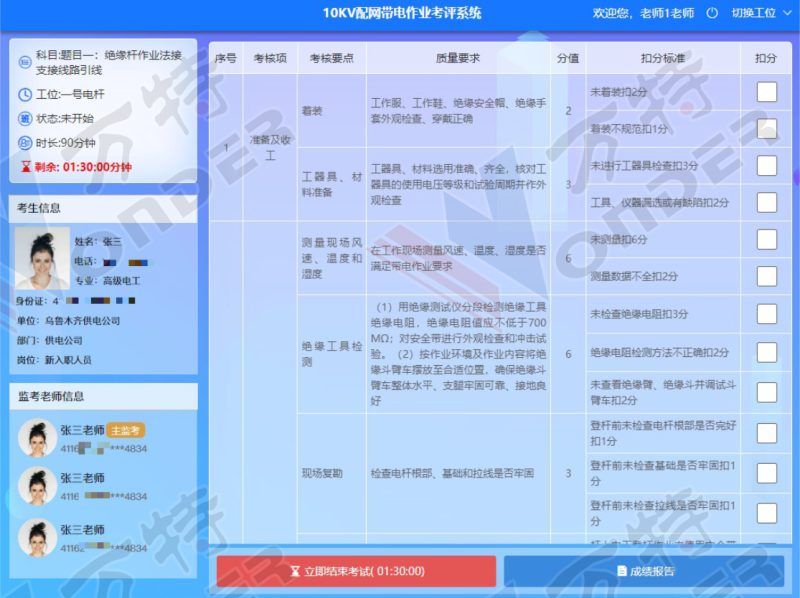 WT-FP190 配網(wǎng)帶電作業(yè)人工智能考評系統(tǒng)